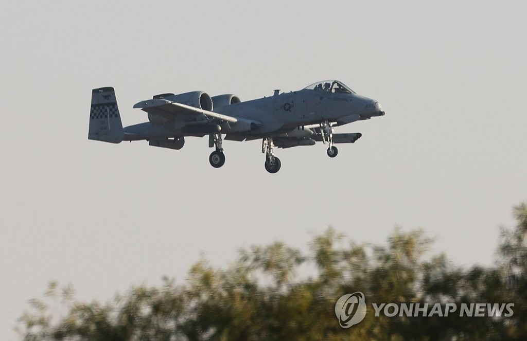 | ▲ 착륙하는 A-10 (평택=연합뉴스) 홍기원 기자 = 한미 공군의 대규모 연합공중훈련 '비질런트 스톰' 훈련이 진행 중인 2일 오후 경기도 오산시 주한미공군 오산기지에 A-10 공격기가 착륙하고 있다. 북한은 2일 분단 이후 처음으로 동해상 북방한계선(NLL) 이남 우리 영해 근처로 탄도미사일 도발을 감행했으며, 이날에만 10여 발의 각종 미사일을 발사했다. 2022.11.2 xanadu@yna.co.kr |