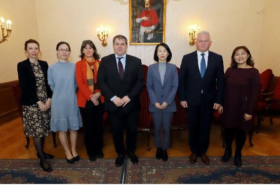 | ▲ 라슬로 보리히 총장(오른쪽 2번째)과 인숙진 한국문화원장(3번째) [주헝가리 한국문화원 제공] |