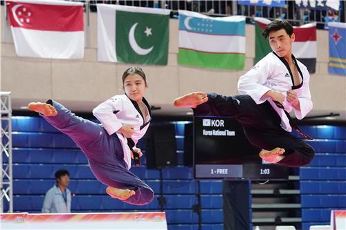 | ▲ 2018년 대만 타이베이에서 열린 세계태권도품새선수권대회 경기 장면. [세계태권도연맹 제공. 재판매 및 DB 금지] [2020.03.16 송고] |
