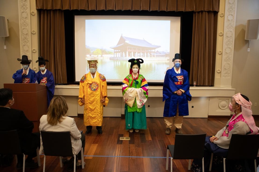 정승덕 한반도평화번영재단(유엔피스코) 샌프란시스코 지부 회장은 훈민정음 서문을 낭독했고, 정유현·이경은 학생은 한지에 인쇄된 훈민정음 서문에 '한글'이라는 글자와 본인의 이름을 써서 보여주는 시연을 했다.