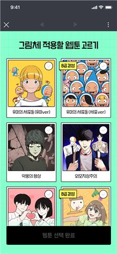 | ▲ 네이버웹툰 '툰필터'에서 제공하는 웹툰 그림체들 [네이버웹툰 제공] |