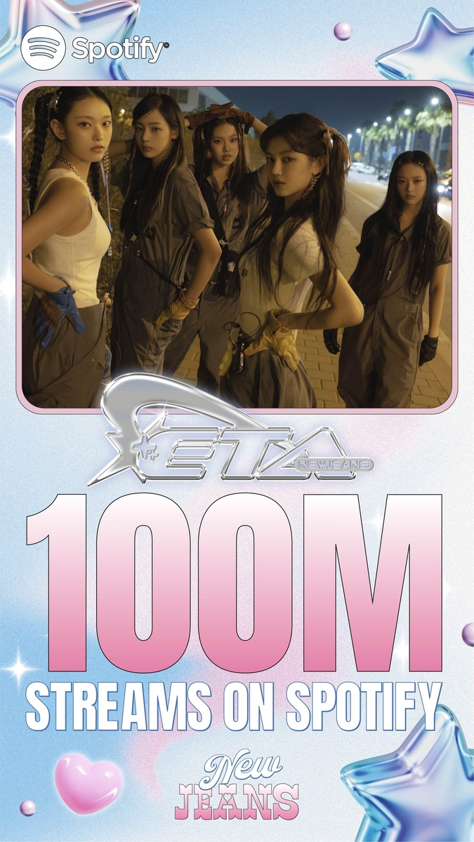 ▲ 뉴진스 'ETA', 스포티파이 1억 스트리밍 = 그룹 뉴진스의 미니 2집 타이틀곡 'ETA'가 음원 플랫폼 스포티파이에서 1억회 이상 재생됐다.