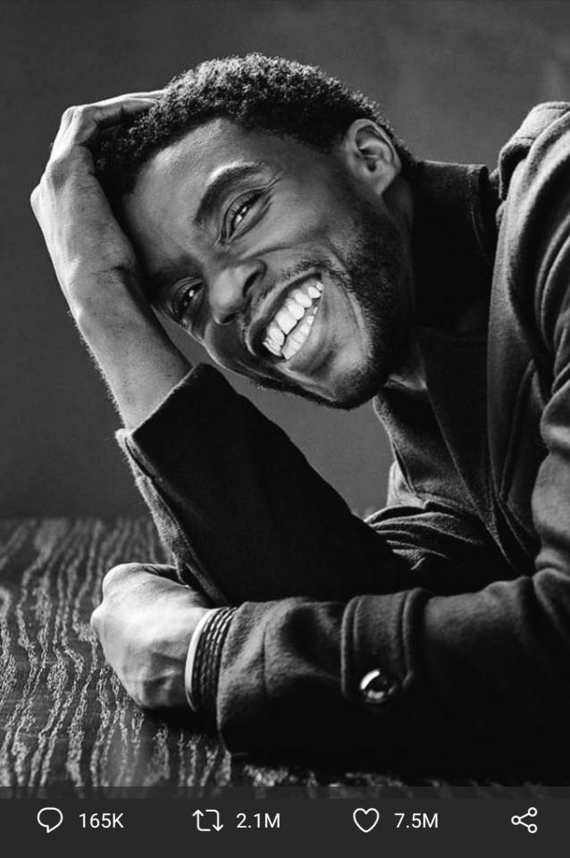 지난 8월 43세의 나이에 대장암으로 숨진 영화배우 채드윅 보즈먼은 리트윗 1위에 올랐다.