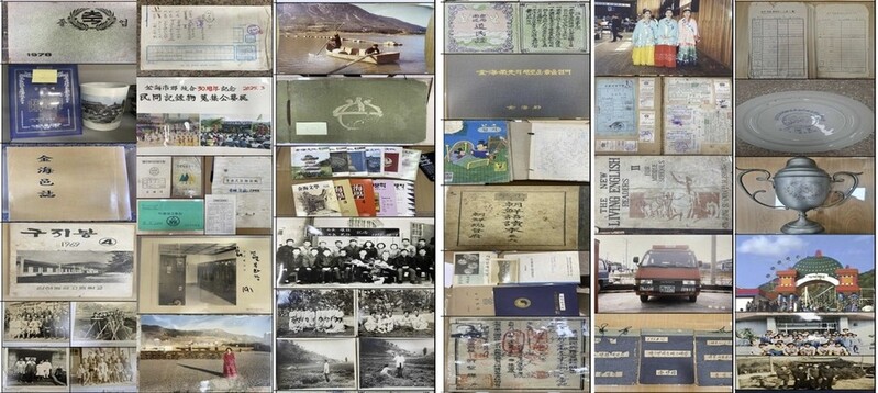 (김해=연합뉴스) 최병길 기자 = '50년 전 연지못 사진, 아버지의 일기장, 조선어독본 권6, 1950년대 개인 앨범, 도민증, 졸업앨범, 김해읍지, 보수지급명세서…'