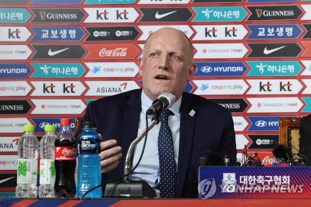 | ▲ In this file photo from Jan. 11, 2023, Michael Muller, new head of the National Team Committee for the Korea Football Association (KFA), speaks at his introductory press conference at the KFA House in Seoul. (Yonhap) |
