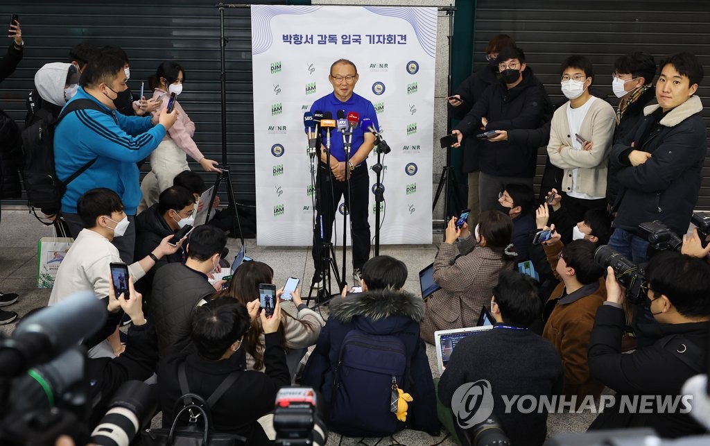 | ▲ South Korean football coach Park Hang-seo speaks to reporters at Incheon International Airport, west of Seoul, on Feb. 14, 2023, after ending a five-year run as head coach of the Vietnamese men's national team. (Yonhap) |