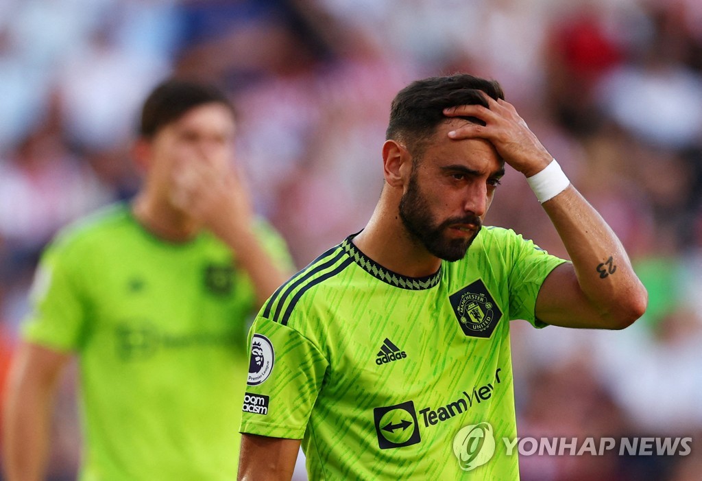 | ▲ 낙담한 맨유 브루노 페르난데스 [로이터=연합뉴스] |