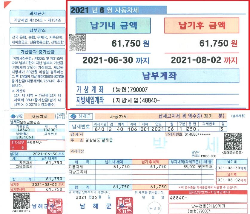 납부세액·납부기한·납부계좌 등 고지서 중앙 배치