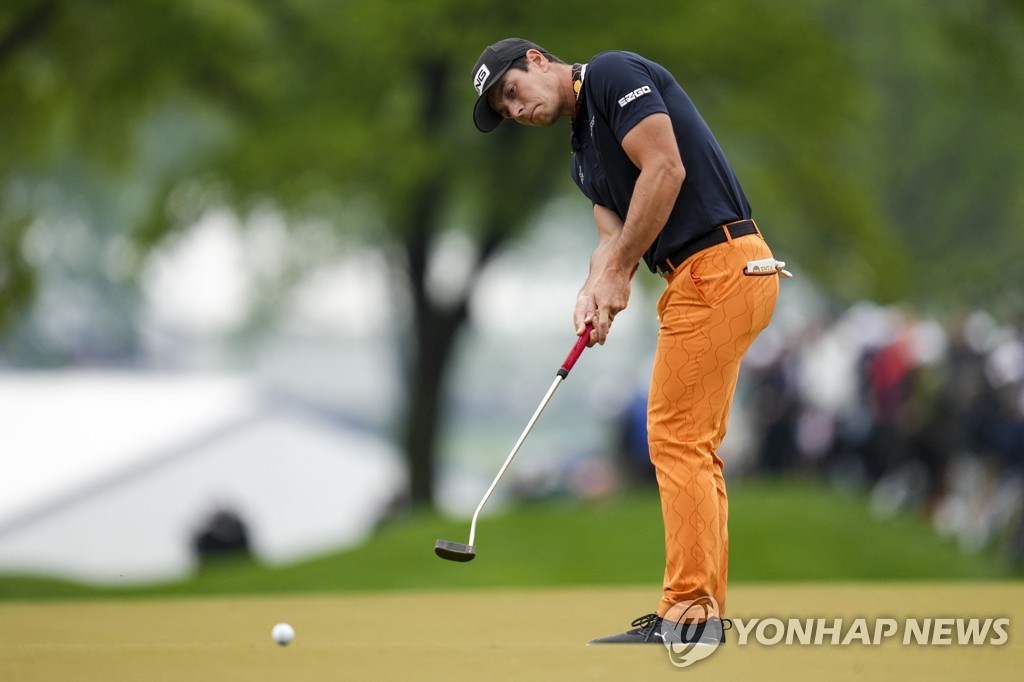 | ▲ 9번 홀 그린에서 퍼트하는 호블란 [Aaron Doster-USA TODAY Sports/로이터=연합뉴스] |