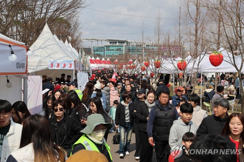 | ▲ 붐비는 2025 논산 딸기축제장 일대 [논산시청 제공. 재판매 및 DB 금지] |