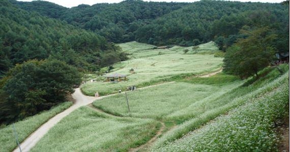 흰색의 메밀꽃으로 덮인 이곳은 마치 눈이 내린 듯하다.