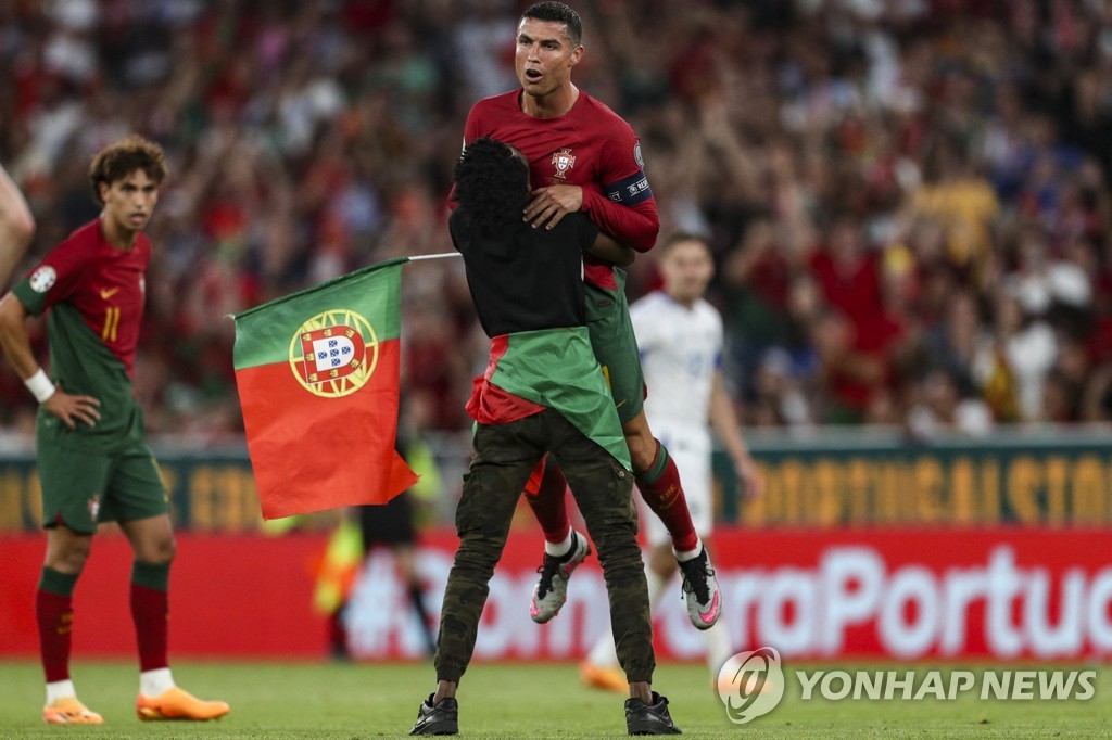 | ▲ 그라운드에 난입해 호날두 들어 올린 극성팬 [AFP=연합뉴스] |