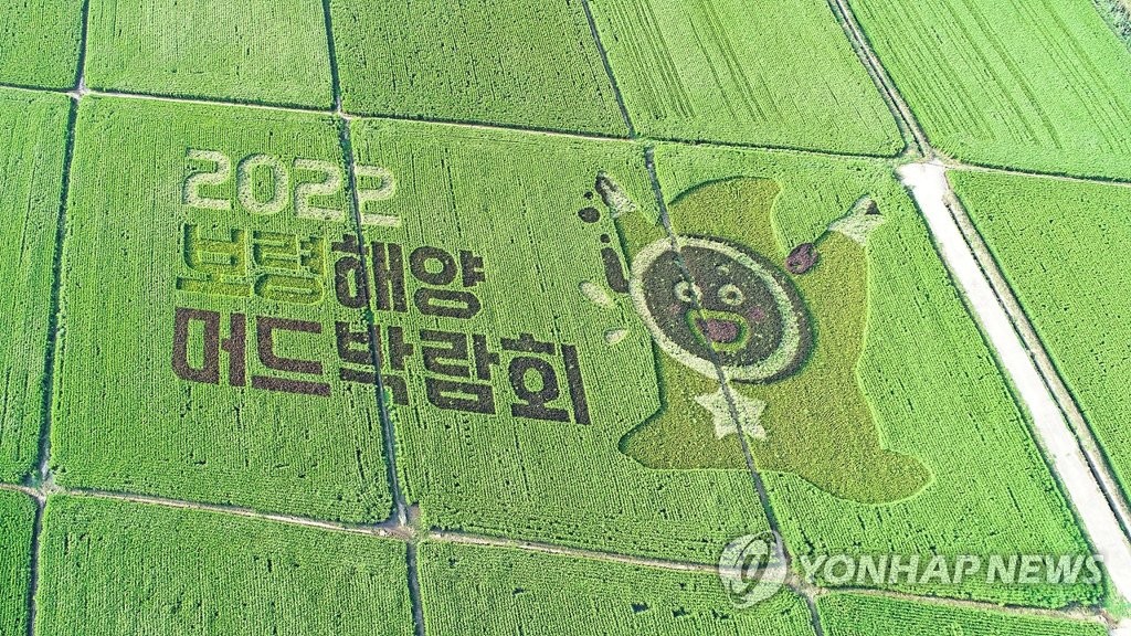 | ▲ 보령 논에 조성된 '2022 보령해양머드박람회' 홍보 그림 [보령시 제공. 재판매 및 DB 금지] |