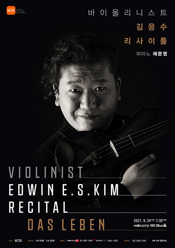 (서울=연합뉴스) 성도현 기자 = ▲ 바이올리니스트 김응수, 앨범 발매 기념 리사이틀 = 바이올리니스트 김응수가 앨범 '삶'(Das Leben) 발매를 기념해 오는 24일 오후 7시30분 서초구 예술의전당 IBK챔버홀에서 리사이틀을 연다. 부인인 피아니스트 채문영이 반주를 맡는다.