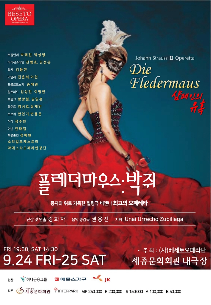 ▲ 베세토오페라단 오페레타 '박쥐' = 베세토오페라단이 이달 24~25일 종로구 세종문화회관 대극장에서 요한 슈트라우스 2세의 오페레타(오페라보다 작은 규모의 음악극) '박쥐'를 공연한다.
