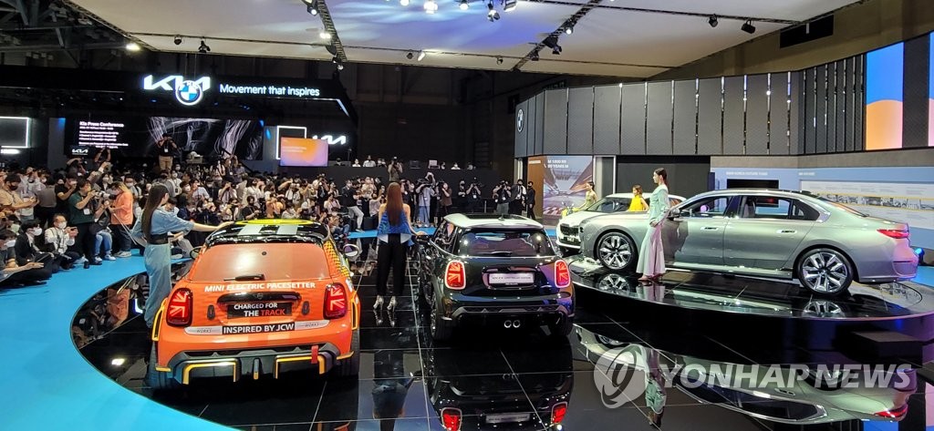 ▲ 자동차 축제 부산국제모터쇼 언론 공개 (부산=연합뉴스) 조정호 기자 = 14일 부산 해운대구 벡스코에서 열린 부산국제모터쇼 프레스데이 행사에서 BMW그룹코리아가 아시아 최초 공개 1종과 국내 최초 공개 4종 등 21가지 모델을 선보이고 있다. 2022.7.14 ccho@yna.co.kr