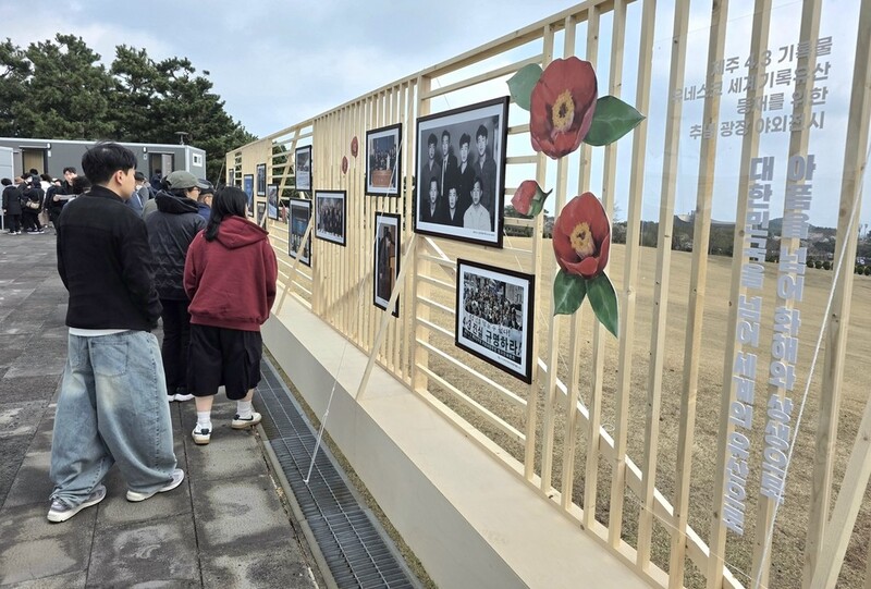 | ▲ 4·3기록물 세계기록유산 등재를 위한 전시 (제주=연합뉴스) 전지혜 기자 = 지난 4월 3일 제주4·3평화공원에서 열린 제77주년 4·3희생자추념식 행사장 한켠에서 4·3기록물 유네스코 세계기록유산 등재를 위한 야외 전시가 진행되고 있다. |