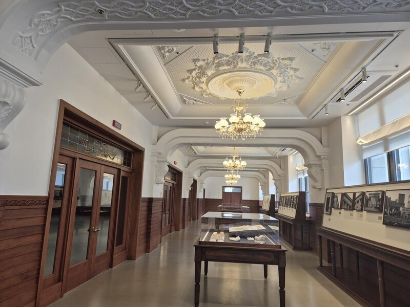 1층 천장의 꽃문양 석고 부조를 복원했고 준공 당시 설치된 금고 문 원형을 4층으로 옮겨 전시했다.
