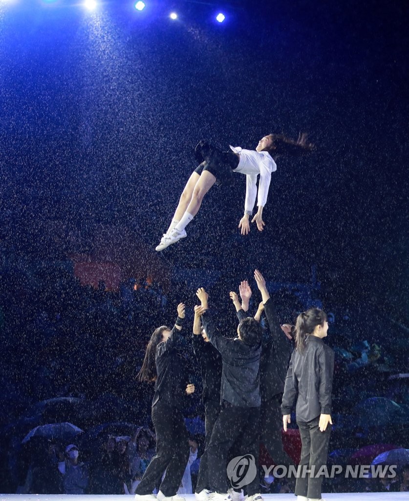 | ▲ 빗속 화려한 퍼포먼스 (원주=연합뉴스) 이재현 기자 = '2022원주다이내믹댄싱카니발' 출전팀이 빗속에서 화려한 퍼포먼스를 펼치고 있다. 2022.10.3 jlee@yna.co.kr |