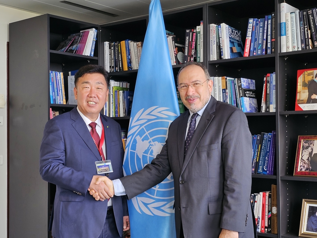 | ▲ 타우픽 젤라시 사무총장보 만난 이범석(왼쪽) 시장 [청주시 제공. 재판매 및 DB 금지] |