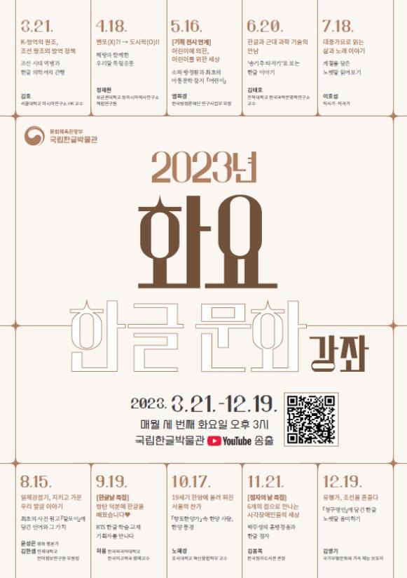 ▲ 국립한글박물관 '화요 한글문화 강좌' = 국립한글박물관은 이달 21일 화요일 오후 3시에 인문학 강좌 프로그램인 '화요 한글문화 강좌' 첫 강의를 시작한다.