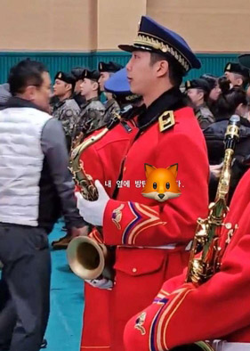 전날 SNS에는 빨간색 제복을 입고 색소폰을 들고 있는 RM의 사진과 함께 "지인 수료식에 군악대 남준(RM)이 왔다"는 글이 올라왔다.