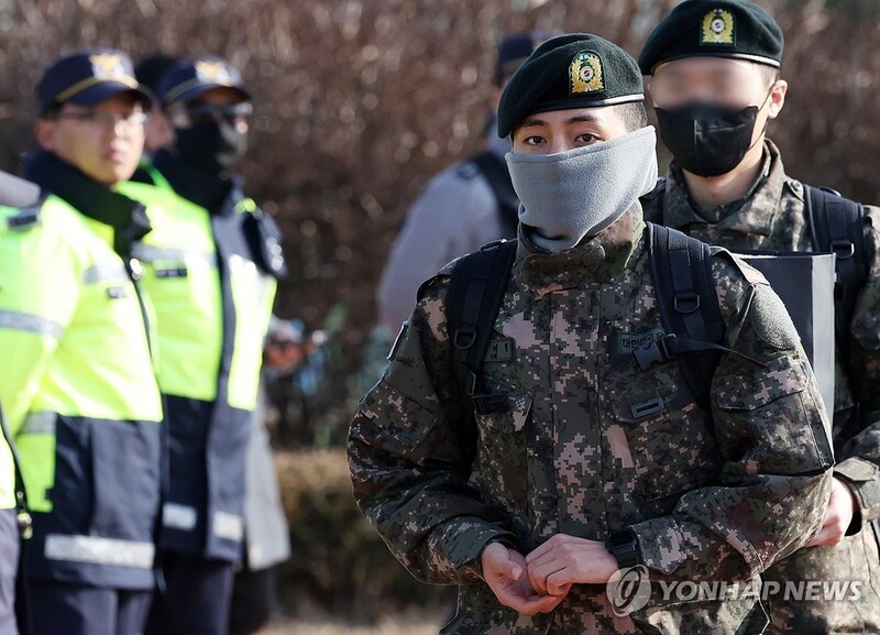 | ▲ 춘천역 도착한 BTS 뷔 (춘천=연합뉴스) 양지웅 기자 = 그룹 방탄소년단(BTS)의 뷔(본명 김태형)가 지난 8일 강원 춘천역에서 자대로 이동하는 차량으로 향하고 있다. 2024.2.8 yangdoo@yna.co.kr |