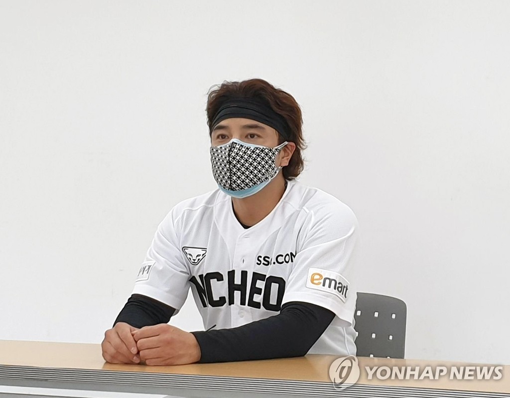| ▲ Choo Shin-soo of the SSG Landers speaks to reporters at Ulsan Munsu Stadium in Ulsan, 415 kilometers southeast of Seoul, on March 14, 2021. (Yonhap) |