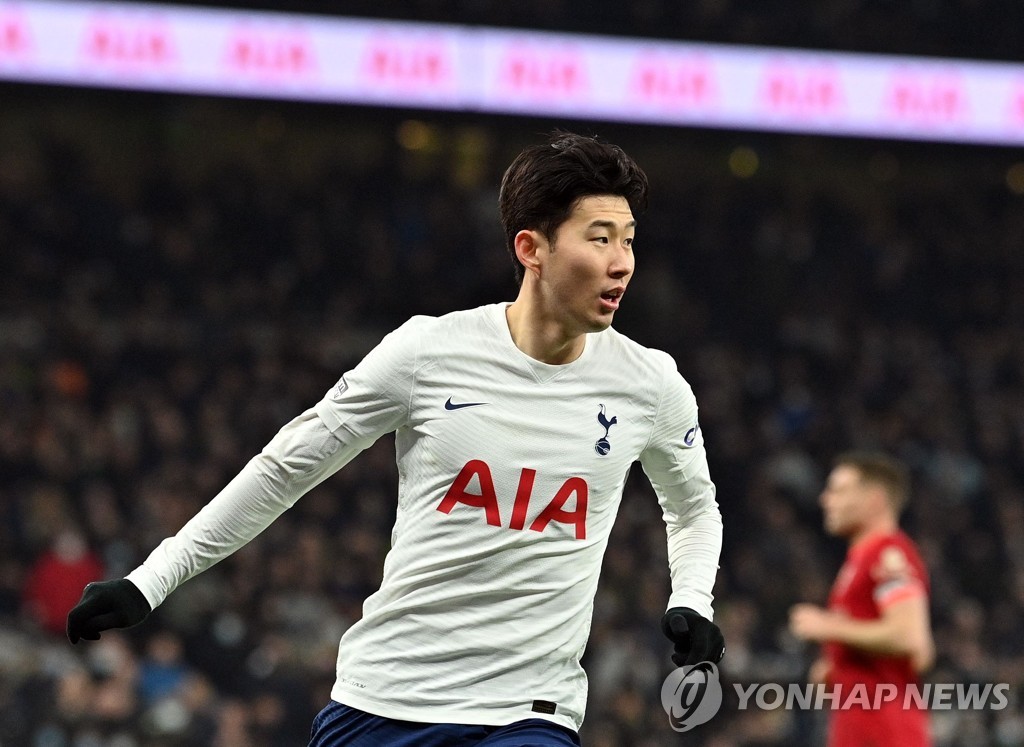 | ▲  In this AFP photo, Son Heung-min of Tottenham Hotspur celebrates his goal against Liverpool during the clubs' Premier League match at Tottenham Hotspur Stadium in London on Dec. 19, 2021. (Yonhap) |