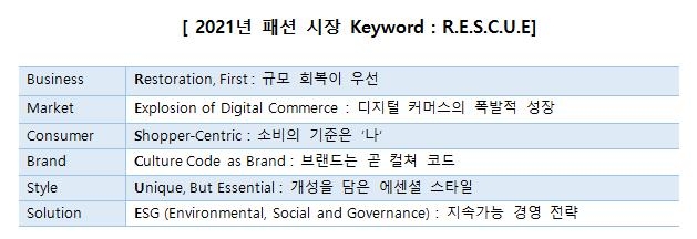 | ▲ 내년 패션시장 키워드 R.E.S.C.U.E [삼성물산 보도자료 캡처. 재판매 및 DB 금지] |
