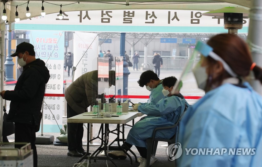 | ▲ Citizens wait to receive coronavirus tests at a makeshift testing site in front of Seoul Station in central Seoul on Feb. 20, 2021. (Yonhap) |