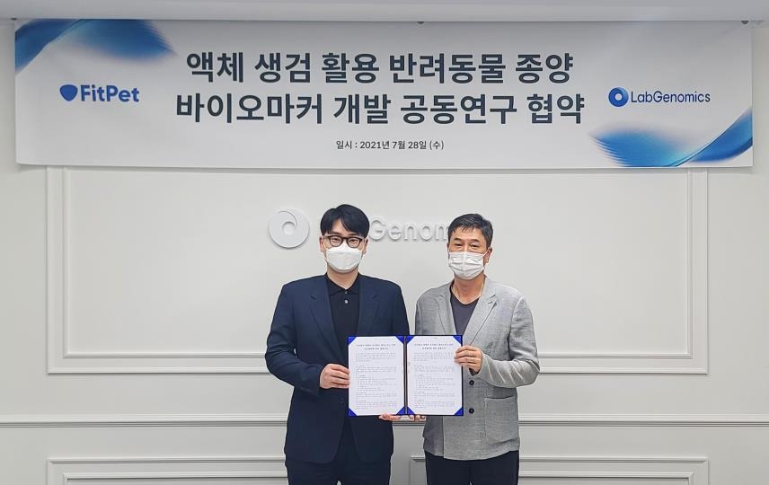 (서울=연합뉴스) 김잔디 기자 = 분자진단 기업 랩지노믹스[084650]는 반려동물 헬스케어 기업 핏펫과 손잡고 유전자 검사와 진단 기술을 활용한 반려동물 종양 진단 및 의약품 개발에 나선다고 29일 밝혔다.