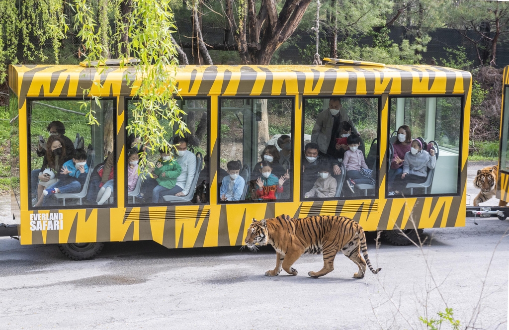 (용인=연합뉴스) 김인유 기자 = 삼성물산 리조트부문이 운영하는 에버랜드는 10일 기존의 사파리버스보다 맹수를 더 가까이에서 관찰할 수 있도록 '사파리월드 와일드트램'을 도입했다고 밝혔다.