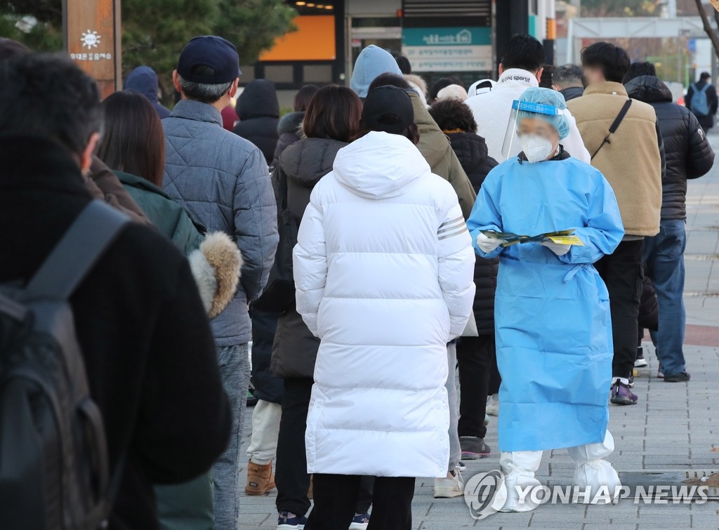 ▲ People line up in front of a COVID-19 testing center in southern Seoul on Dec. 8, 2021. (Yonhap)