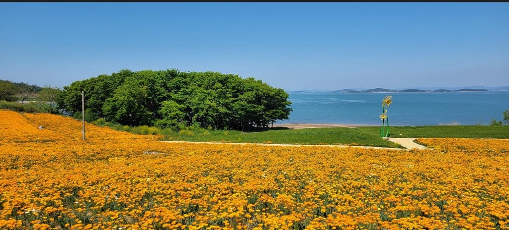신안군 관계자는 6일 "노란 금영화가 12ha에 활짝 피어나며 선도의 푸른 하늘과 바다와 어우러져 마치 섬 전체가 노랑 물감을 풀어놓은 듯 한 폭의 그림과 같다"고 전했다.
