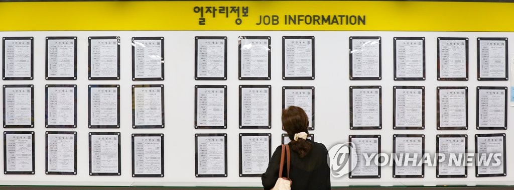 | ▲ This file photo, taken July 19, 2021, shows a citizen looking at job information at an employment arrangement center in western Seoul. (Yonhap) |