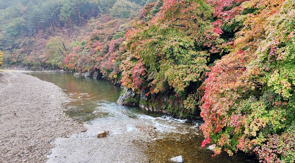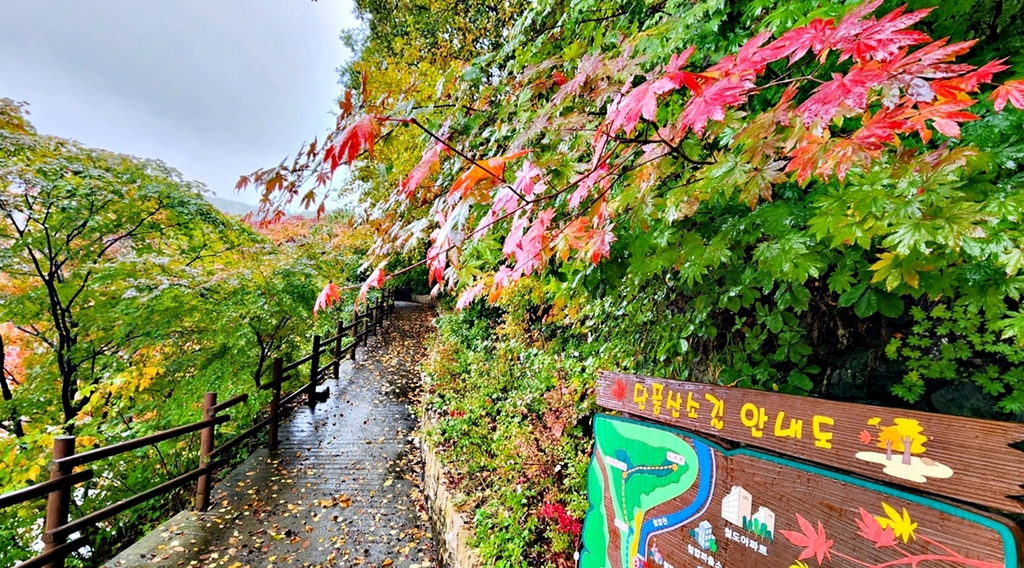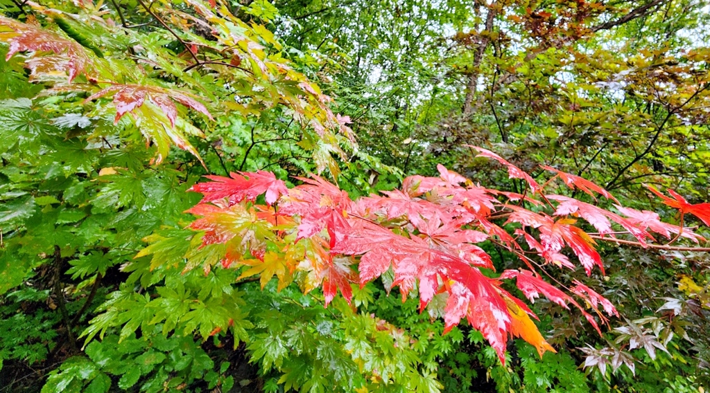 6일째 내리는 가을비 그치면…태백 철암 단풍 타오른다