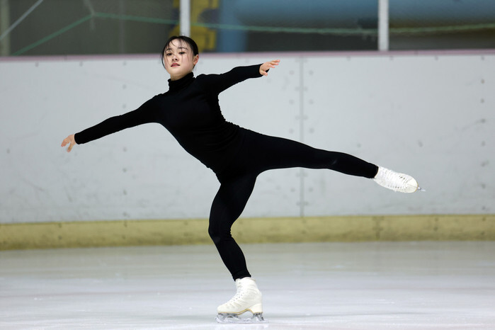 Figure skater Kim Chae-yeon performs in a training session at Taeneung Ice Rink in Seoul on March 11, 2025. Kim captured the women's singles title at the Four Continents Figure Skating Championships in the capital on Feb. 23, only 10 days after winning the gold medal at the Asian Winter Games in China. (Yonhap)