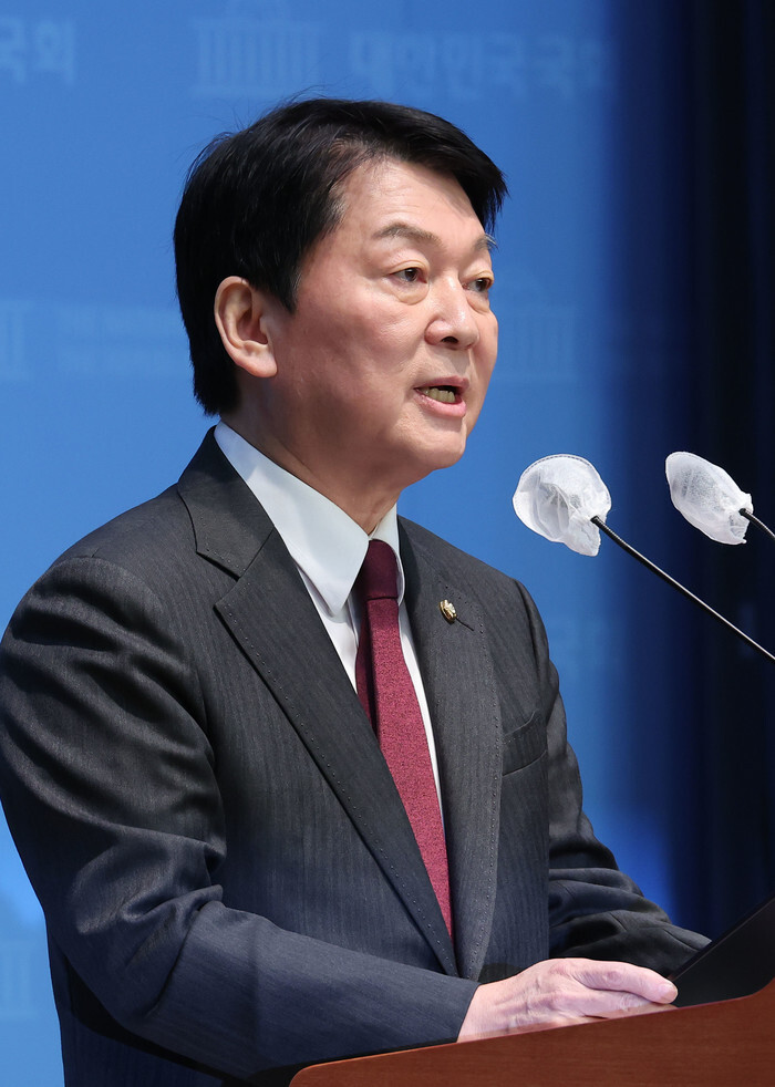 Ahn Cheol-soo, a lawmaker of the ruling People Power Party, speaks during a press conference at the National Assembly in Seoul on Jan. 20, 2025. (Yonhap)