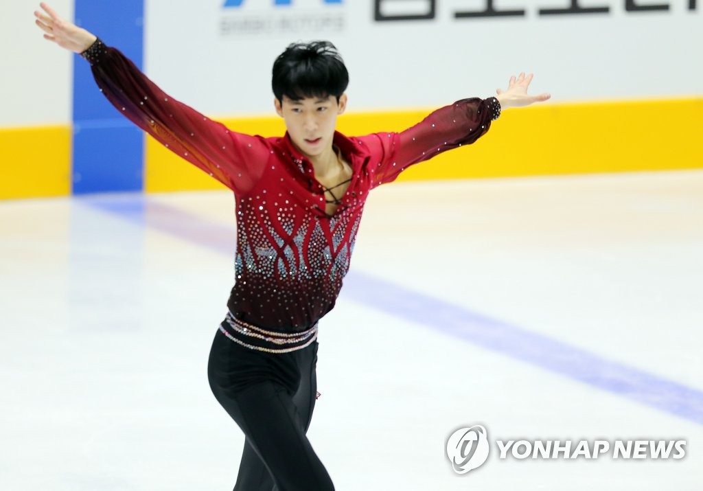 | ▲ In this file photo from Dec. 5, 2021, South Korean figure skater Lee Si-hyeong performs his free skate program in the men's singles during the first leg of the Beijing Winter Olympic trials at Uijeongbu Indoor Ice Rink in Uijeongbu, some 20 kilometers north of Seoul. (Yonhap) |