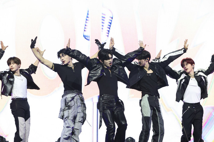 South Korean boy group Zerobaseone performs during a showcase for the group's first album "Never Say Never" in Seoul on Sept. 1, 2025. (Yonhap)