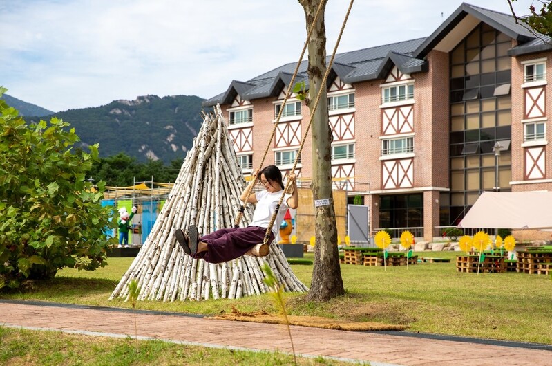 | ▲ 산림엑스포 행사장에서 그네 타는 관람객 [2023강원세계산림엑스포 조직위원회 제공. 재판매 및 DB 금지] |