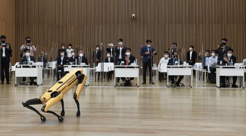 현대차그룹은 이날 '로봇 개'로 불리는 4족 보행 로봇 '스팟'도 시연했다.