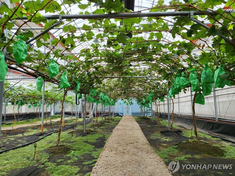 달콤한 청포도 '샤인머스켓' 제주서 첫 수확