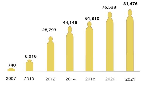 | ▲ 15년간 세종학당 개소 수 증감 [문화체육관광부 제공] |