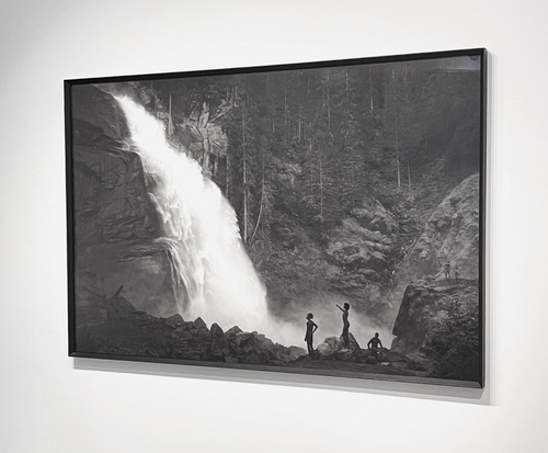 청와대 옆에 있는 공근혜갤러리에서 4일부터 전시 중인 '숲속에서' 연작 중 가장 눈길을 끄는 것은 200호 크기의 '폭포 앞에서'다. 사실주의 회화를 연상케 하는 느낌의 컬러 사진 작업을 주로 해 왔던 작가는 이번 작업에서 강렬한 흑과 백의 명암을 이용해 자연의 위대함과 냉담함을 부각한다.