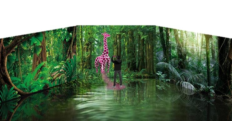 첫 번째 작품은 '생명의 땅'(Land of Life)으로 관객의 위치와 움직임, 선택에 따라 생성되는 모션그래픽과 사운드를 활용해 몰입감을 준다.