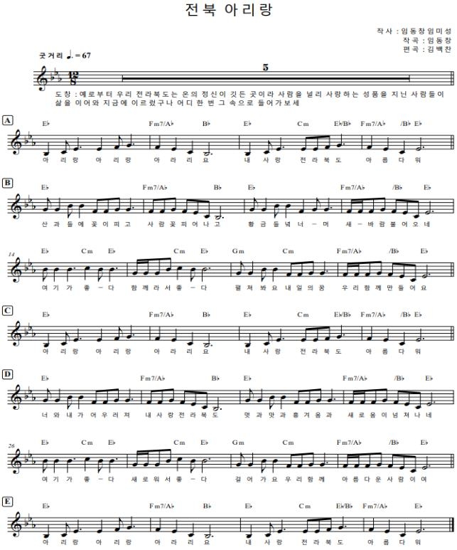 | ▲ 전북 아리랑 악보 [전북도 제공] |