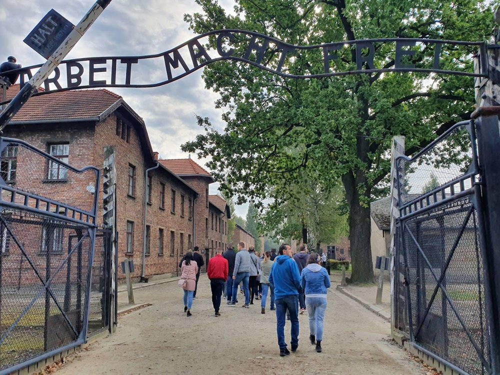 | ▲ 대규모 학살 아우슈비츠 수용소 (오시비엥침(아우슈비츠)[폴란드]=연합뉴스) 양정우 기자 = 나치가 제2차 세계대전 당시 유대인 등 150만명을 학살한 것으로 알려진 아우슈비츠 수용소 정문. 독일어로 노동을 뜻하는 단어 'ARBEIT'의 B자 위아래가 거꾸로 돼 있다. 2019.9.30 eddie@yna.co.kr |