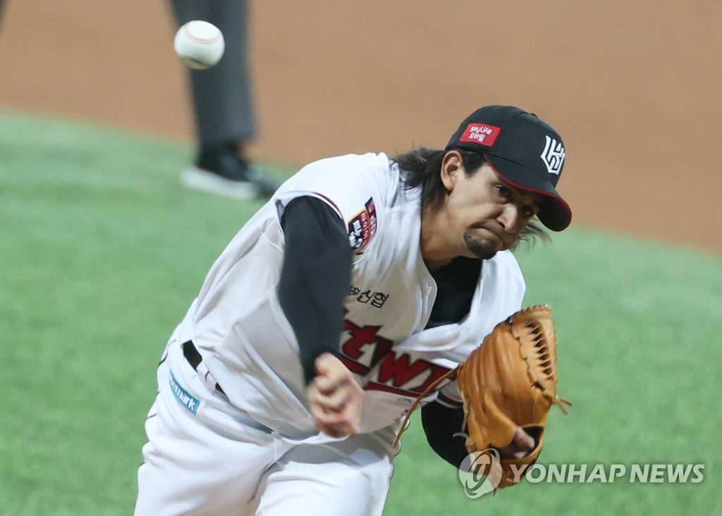 | ▲ In this file photo from Nov. 17, 2021, Odrisamer Despaigne of the KT Wiz pitches against the Doosan Bears in the bottom of the first inning in Game 3 of the Korean Series at Gocheok Sky Dome in Seoul. (Yonhap) |